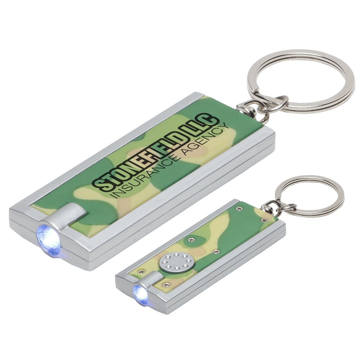 This camouflage keychain is a great match for the camouflage that is such an iconic symbol of our armed services. This handy LED keychain will help shine a light on your brand.